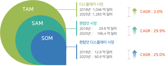 ◯ 유효시장(SAM)은 퀀텀닷(Quantum Dot, QD) 시장으로 정의
