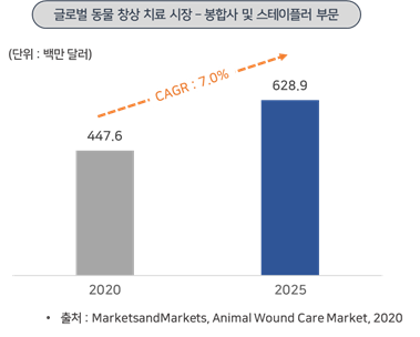 - 글로벌 동물용 봉합사 및 스테이플러 시장은 2020년 4억 4,760만 달러에서 2025년 6억 2,890만 달러로 성장할 것으로 전망 (CAGR : 7.0%)